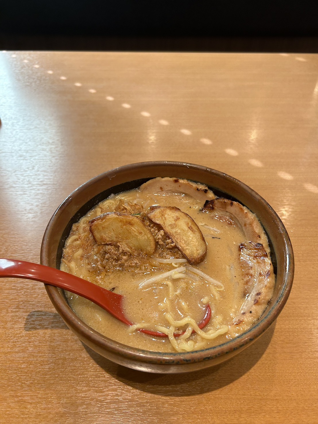 味噌ラーメンは自分が東北出身なこともあり濃い味噌味じゃないと物足りなさを感じてしまうのですが、ここの味噌ラーメンは完璧です。