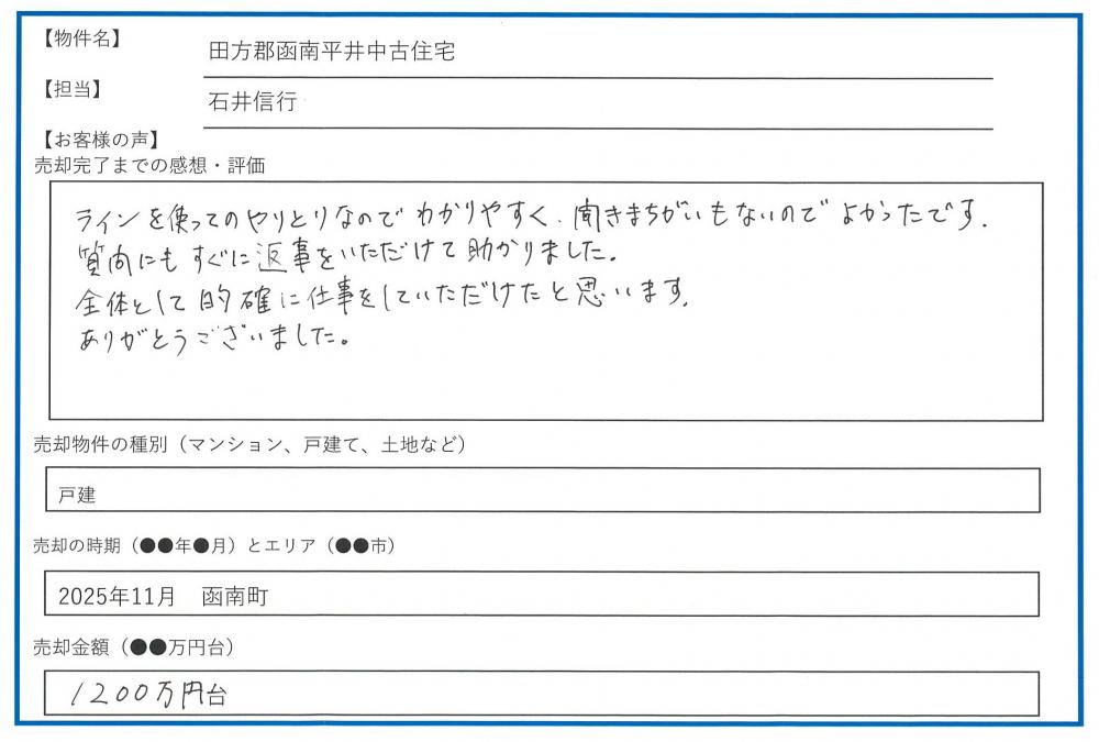 この度は、所有不動産のご売却契約を頂きまして誠にありがとうございました。心より御礼申し上げます。 ご成約まで少し期間を要してしまいましたが、最後は買主様に寄り添う条件をご承諾頂き誠にありがとうございました。思い出の詰まった大切なお家を、大事に利用して頂けそうなお客様が見つかり、とても嬉しく思います。 今後も不動産売買に関すること、不動産売却後で気になることございましたらいつでも対応させて頂きます。末永くお付き合いの程、宜しくお願い致します。