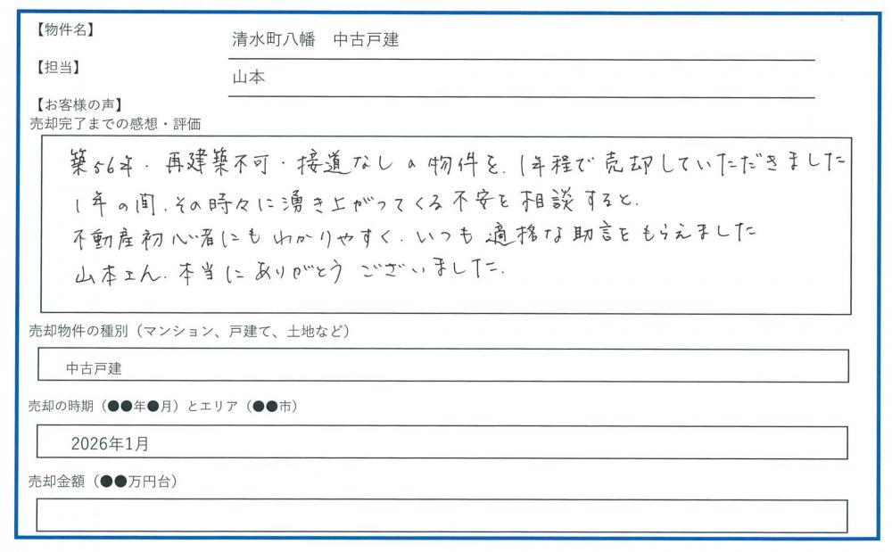 この度は、弊社へ売却のご依頼からご成約・お引渡しまで、誠にありがとうございました。
