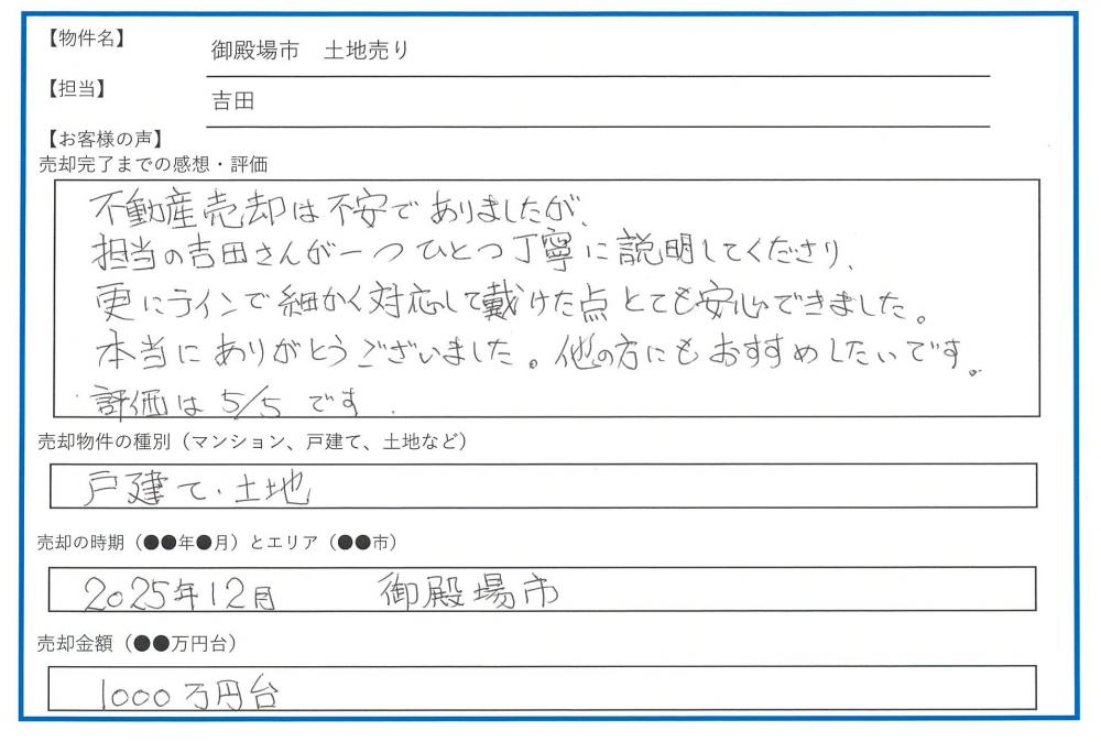 この度は、弊社へご売却のご依頼、ご成約・お引渡しとさせて頂きありがとうございました。