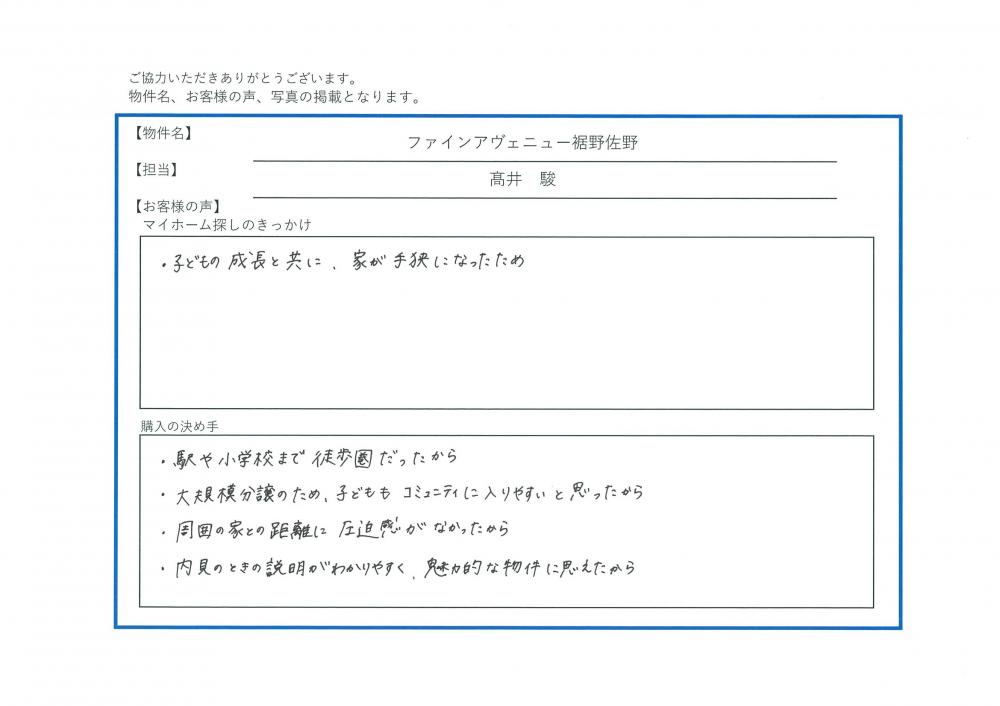 内見のときの説明がわかりやすく、魅力的な物件に思えたことが購入の決め手。裾野市のファインアヴェニューをご成約のお客様